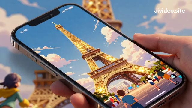 (炫酷的AI作画画面快速切换:手机屏幕上,一只Nano Banana在AI加持下,变幻出逼真的3D手办,埃菲尔铁塔瞬间镀上耀眼金色。)