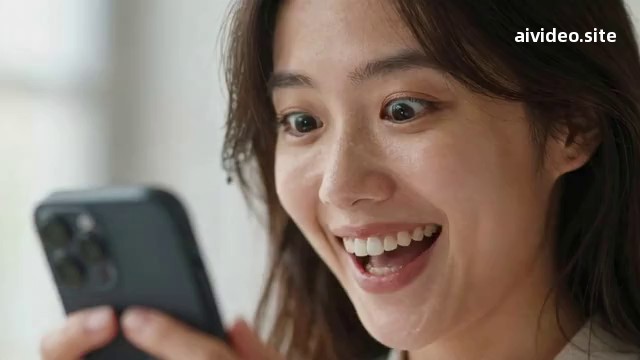 (画面:你正盯着手机屏幕,突然,眼睛瞪大,对着镜头露出灿烂笑容。)