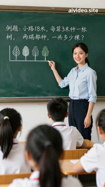 请生成一个小学数学植树问题教学讲解视频,