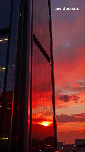 残阳如血,染红科技大楼玻璃幕墙,